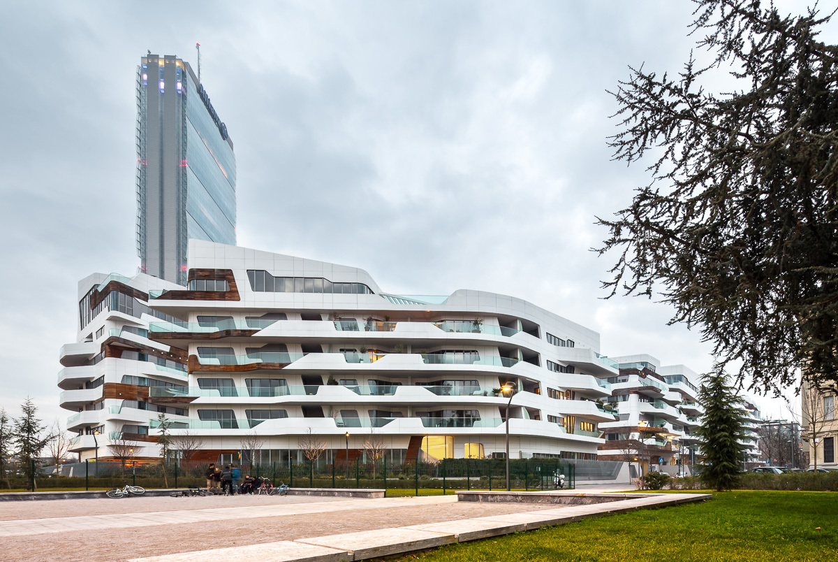 札哈.哈蒂用經典流暢波浪型線條設計出CityLifeMilano住宅社區的天際線。整個社區共有七棟波浪起伏的住宅大樓,每棟高度都不相同,從5層樓到13層都有。這個作品中還能看到建築師的其他代表性元素:如蛇般蜿蜒的陽台及屋頂輪廓線條,讓所有的頂樓公寓呈現出柔美優雅的外觀;頂樓還有寬敞的加蓋平臺。這個工程從2009年8月開始動工,第一批公寓計畫於2013年交屋。