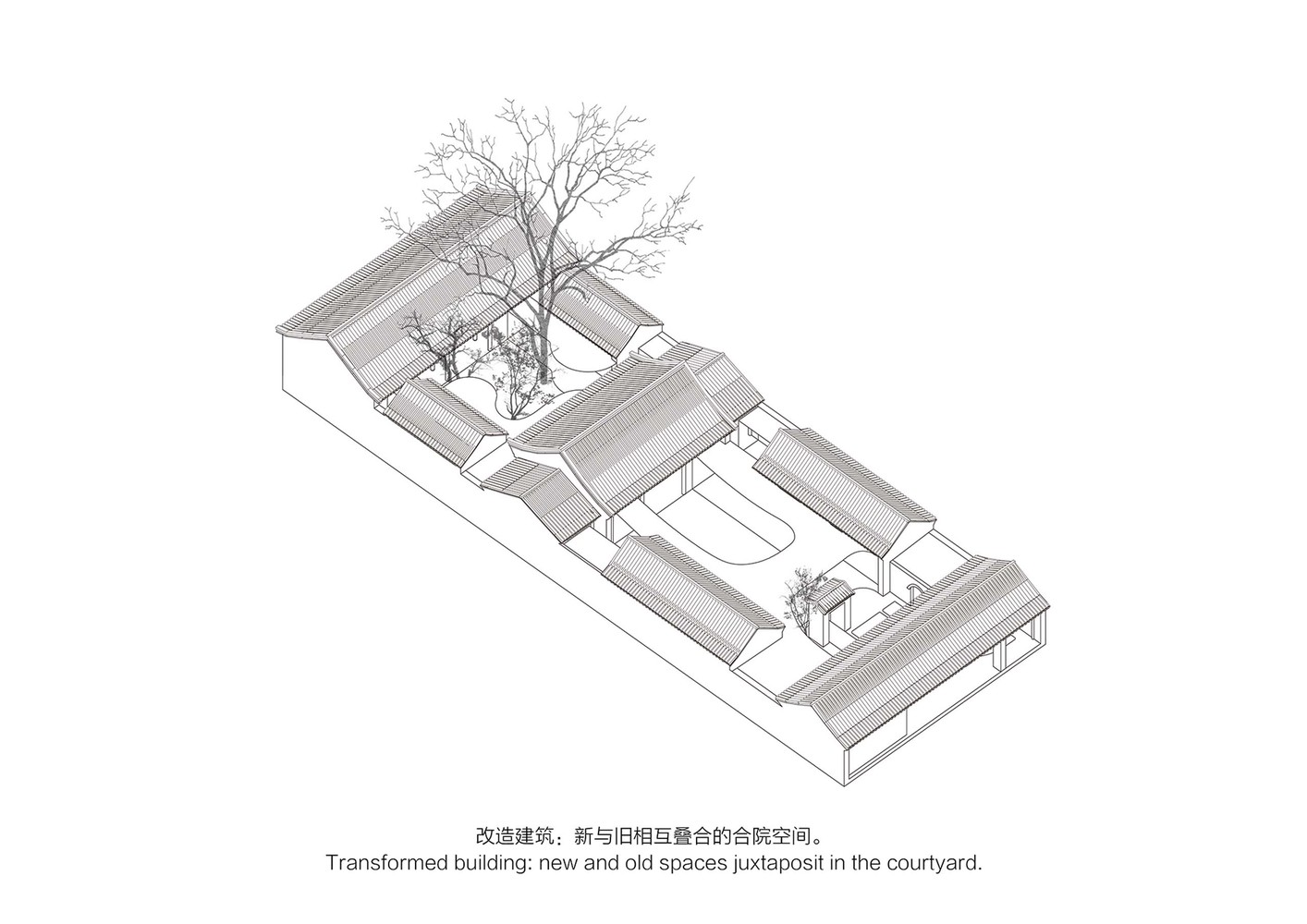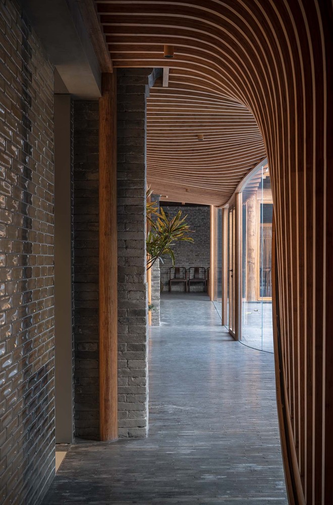 設計公司將遊廊-中國傳統建築的基本元素-嵌入到就四合院中,將原本分開的七間房屋連結成一個整體。遊廊可以作為路徑通道,重新劃分庭院層次,並創造出有趣的步行體驗和絕妙的景色。