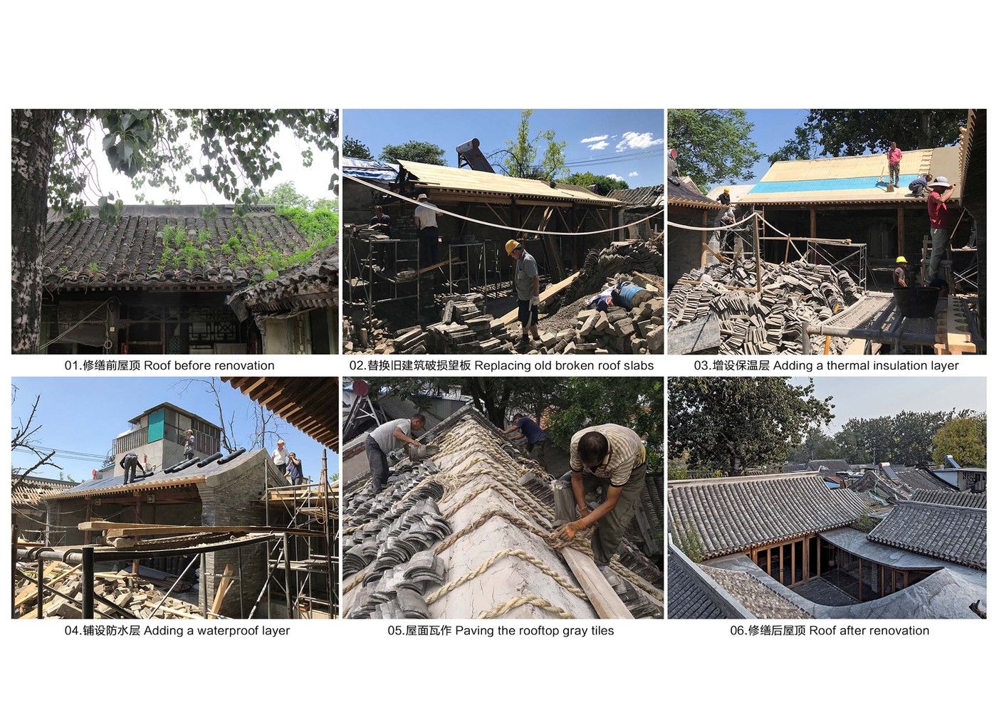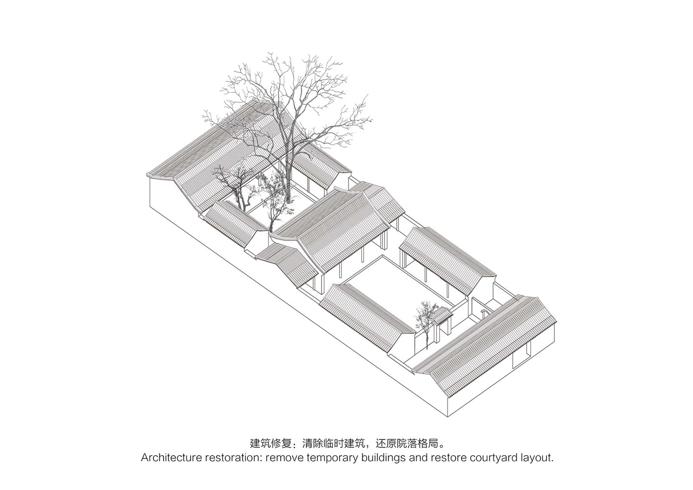 在接手這個專案時,建築營設計公司設定了兩個目標:翻新舊房並加入新元素。一方面,設計師對四合院進行整理、修復房子的外觀、加強建築結構,以重現傳統四合院建築樣貌另一方面,他們加入了新的生活設施,像是浴室、廚房及車庫、HVAC管線、以及新的遊廊空間。新舊交織呈現出一個全新且更好的空間,來滿足未來院子作為公共接待和居住空間使用需求