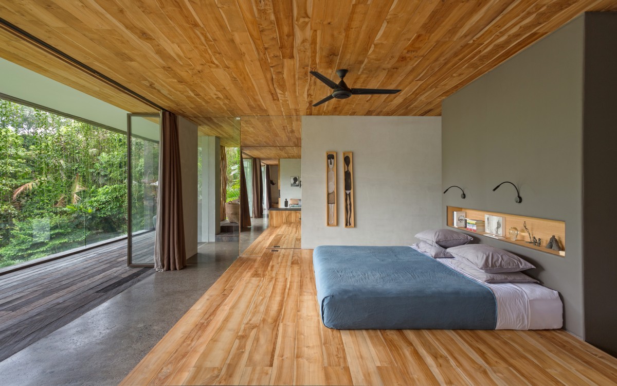 以傳統巴里建築風格來說,不同帳篷可提供各種功能與開放的公共空間。臥室與辦公室、健身房和影音室等私人空間皆是封閉的。