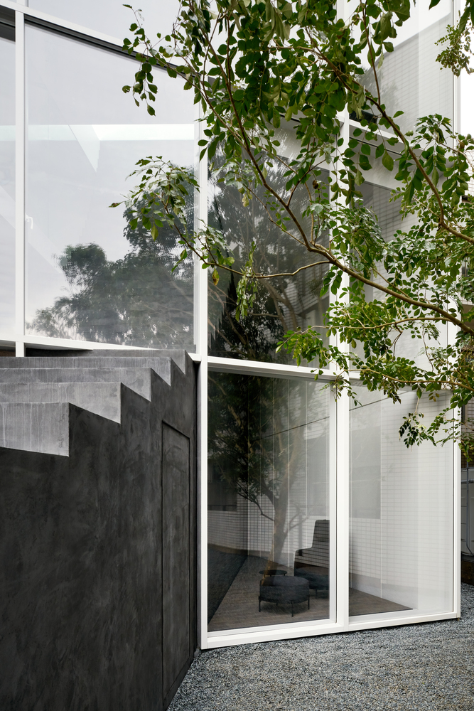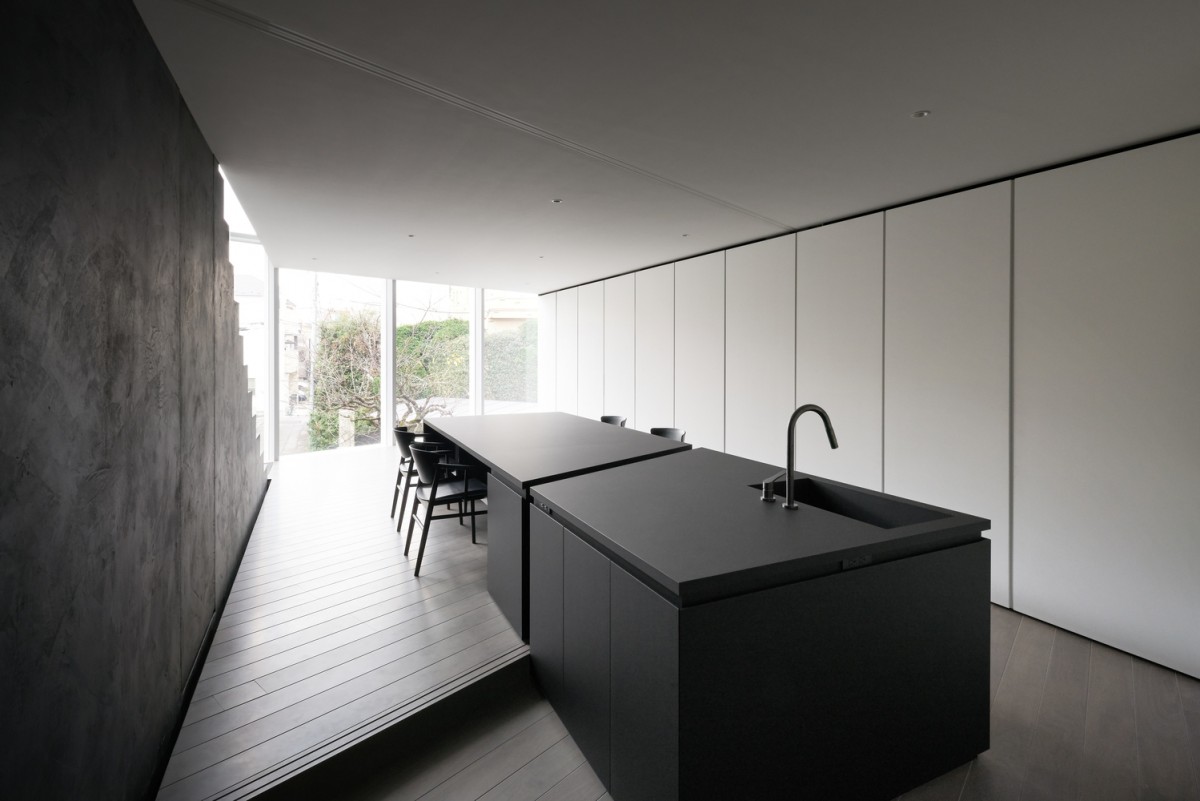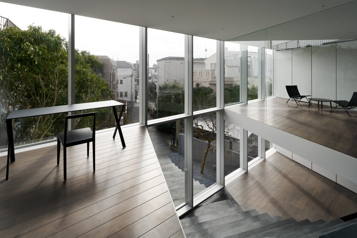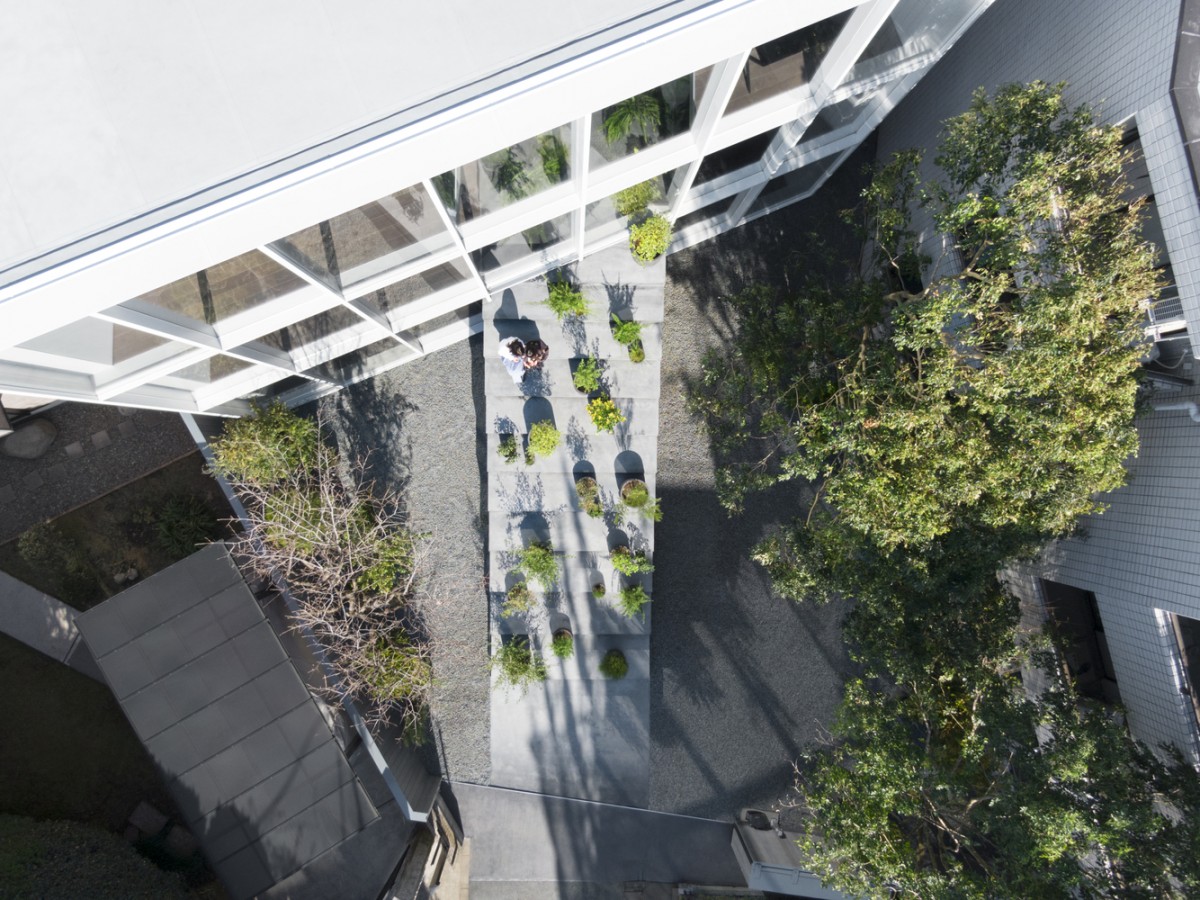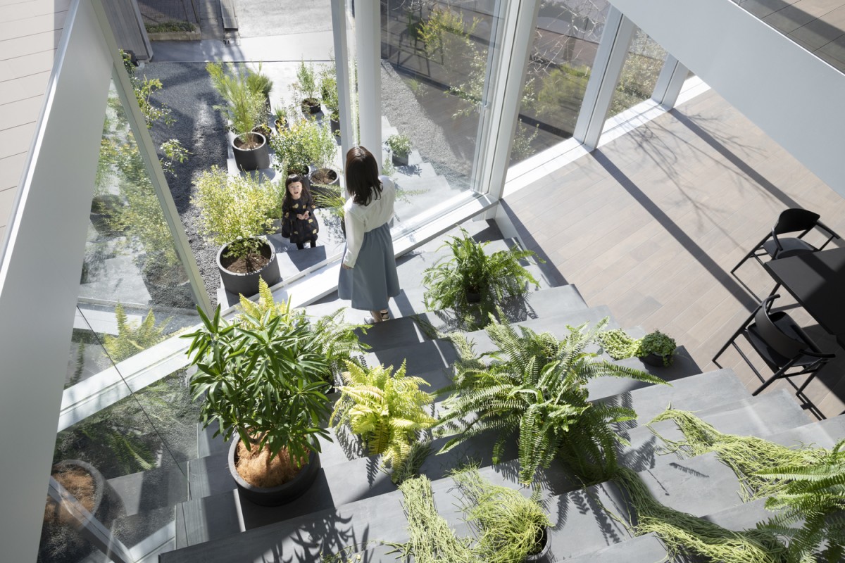年輕夫婦與他們的孩子皆住在二、三樓。為了避免兩家子因不同居住樓層而感到懸殊,屋子南端庭院建蓋了一道像是階梯的建物沿路貫通一至三樓