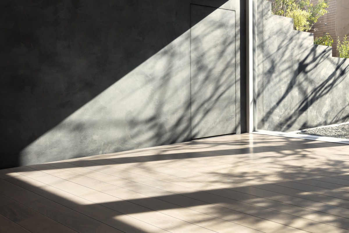 整體地形規劃也能為上一代喜愛的柿子樹保留一席之地。為了方便年長者居住且省去爬樓梯的困難度,老夫妻便住在一樓房間。另有與老夫妻一同居住的八隻貓也能自在的跑進跑出,同時也讓老母親更有機會從事她的興趣:植栽花草。