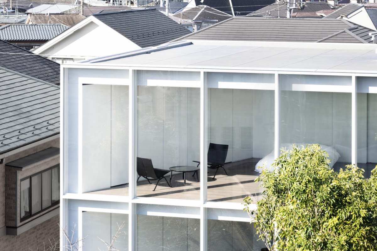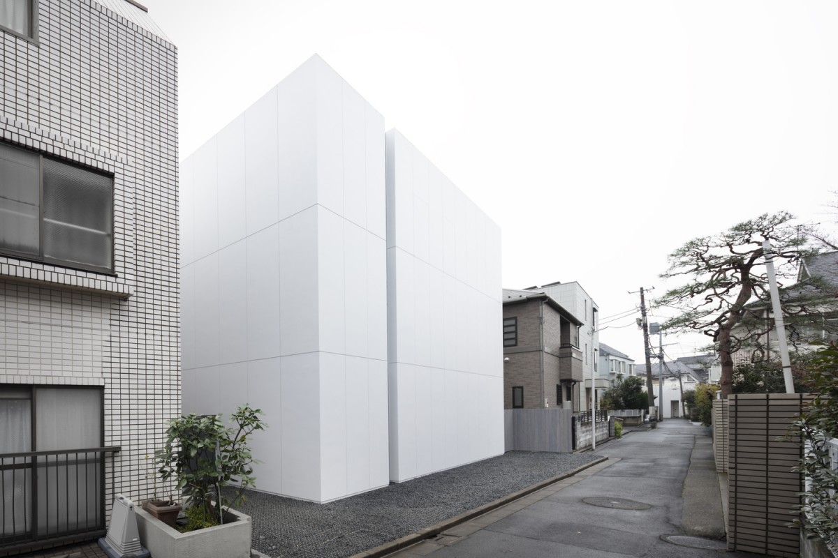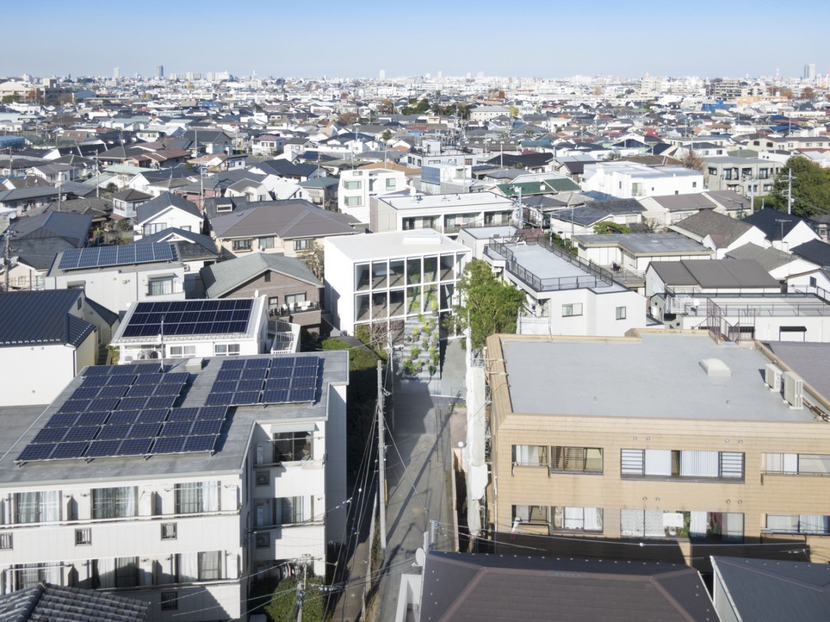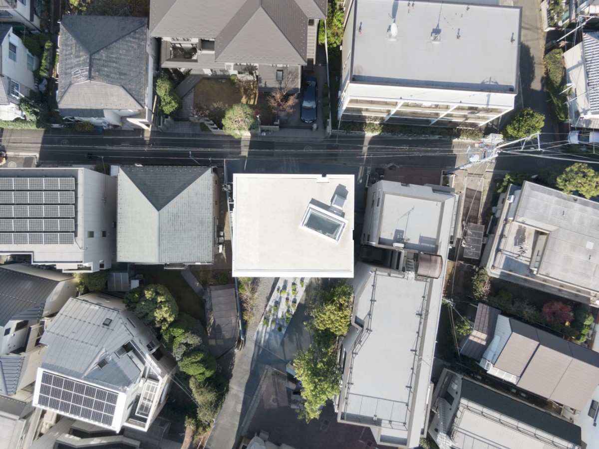 這是位於日本寧靜居住區的兩代住宅。這裡周遭處處是房屋與公寓大樓,這使得建商只好將整個建築向北挪動,如此便能達到在南向大窗前擁有好的採光、空氣流通與綠化庭園的環境。