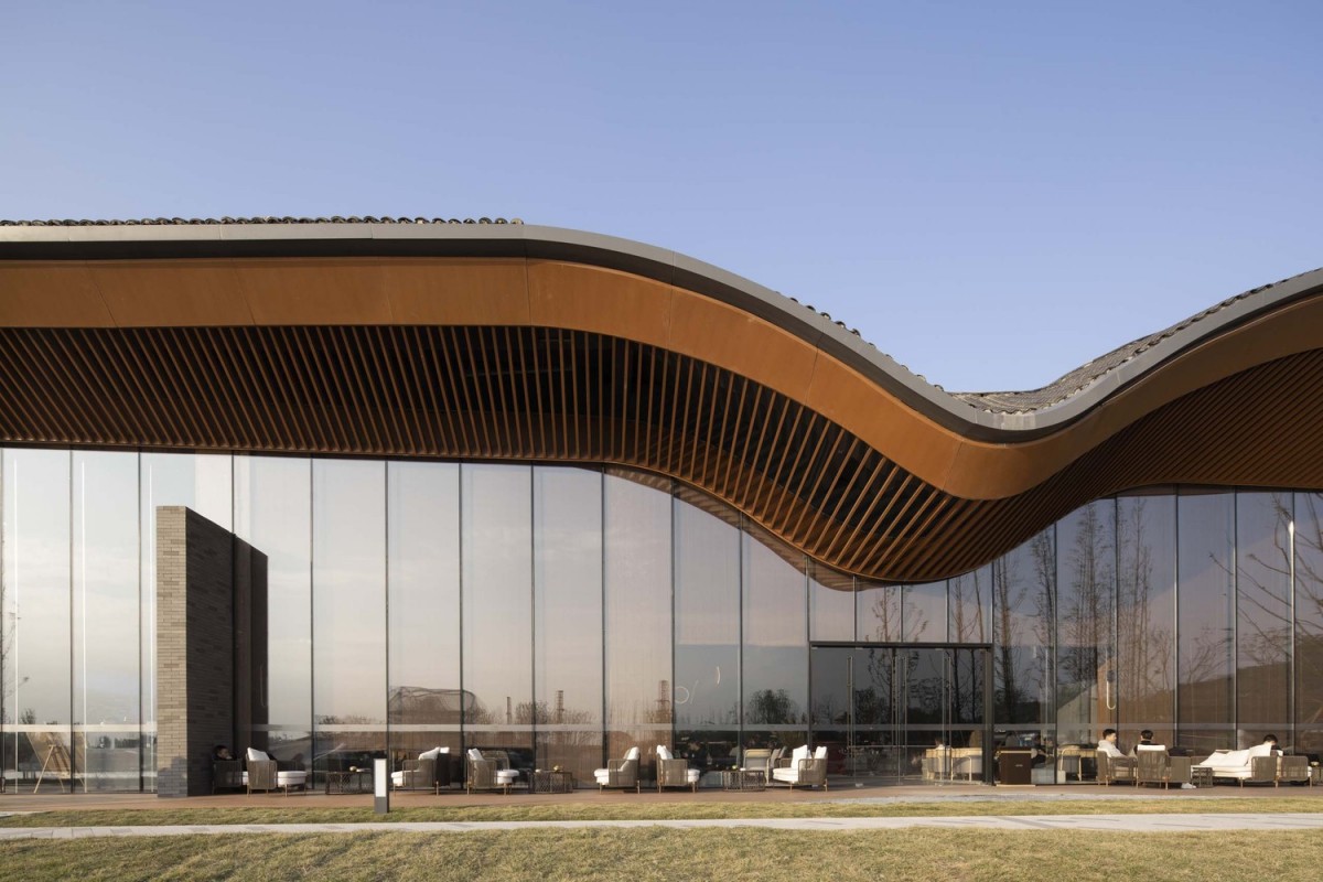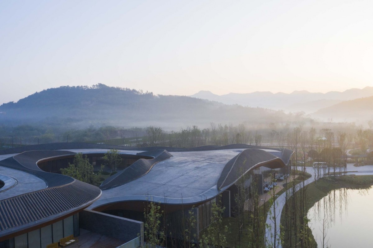 酒店的形狀與佈局,再加上這些隱喻,透過不同牆壁與屋簷所打造出的不同場景,旨在將遊人與蜀山和鄰近的湖泊融合在一起。