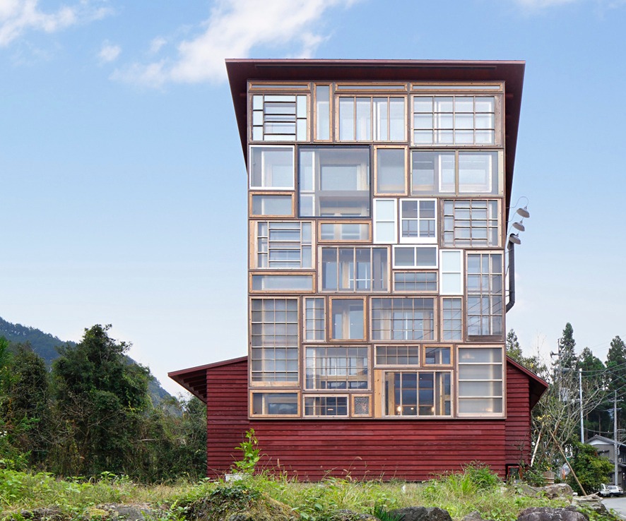 德島縣的上勝町致力於實現零浪費,旨在邁向可持續回收的社會。為了使建築具有當地的特色,該建築取用當地廢棄房屋的窗戶組成新建築的外牆公共房屋也能與城鎮共享陽光。該城鎮的人口和許多日本偏鄉一樣,都在持續下降中。