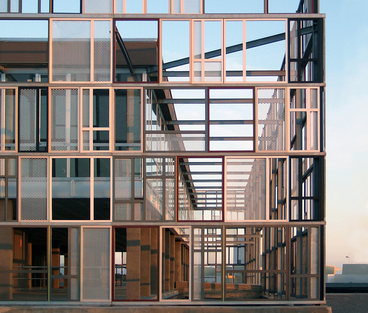 該建築外圍環繞著奇特的金屬格子,這些格子是由各種回收材料所組成的。在這建築中的每種材料,都保留著物質原有的質感和觸感。我們將該建築想像成一個色彩豐富的金屬籠子,將所有物品都保留其中-這是一種法拉第籠子的新概念。