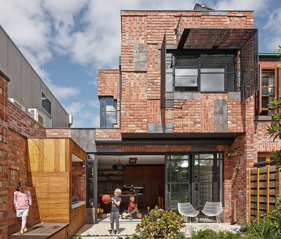 「建材在拆除之後儲藏在新工程地點,以便於改造。從原先的樓梯、現有的階梯以及欄杆變成了懸掛的枝型吊燈現有的窗戶變成了裝飾牆以及採光井。剩下的階梯欄杆成了孩子的高架床以及廚具把手金屬安全門變成了外部隱私和遮陽裝置。石板瓦成為外牆窗台及特色元素。房屋現有的後門以及機能不全的部分都被通向後花園的宜居環境取而代之。