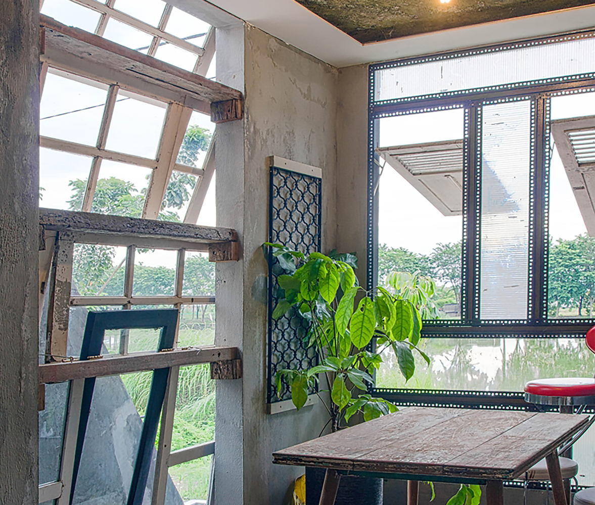 「這棟建築是用廢料建造而成的,這些廢料在設計和建造上同等重要。在這裏,建築師嘗試使用古董門,將這些門轉變成窗戶和桌子等物品。這些材料在原本的建築中曾是不起眼的固定裝飾,在這邊建築師將其轉變成為新建築的主要特色