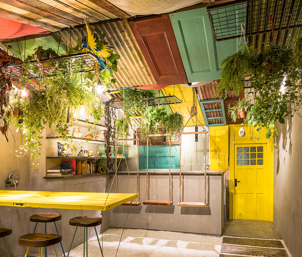 Barraco巴西酒吧是由上海問和答建築設計公司(Q&A)所設計,結合回收材料,像是從上海拆除建築物的門窗和其他物品,打造出非正式、沒有規則以及多彩的熱帶城市氛圍。」